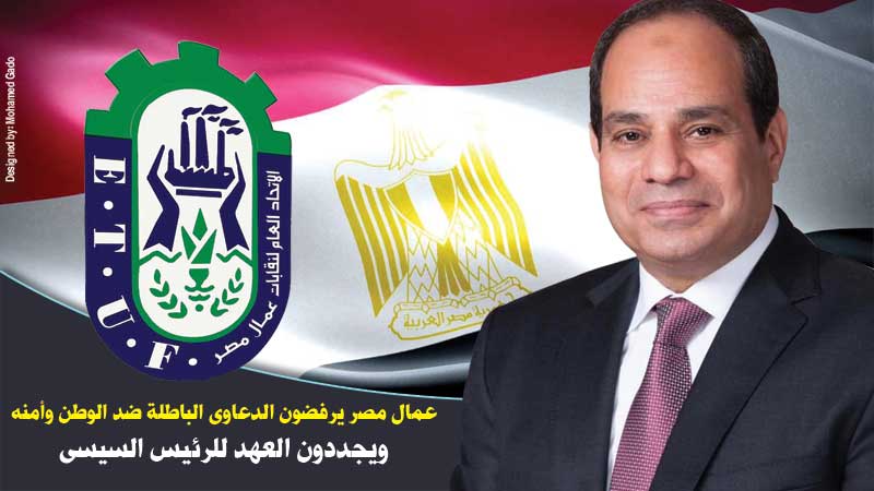 إن عمال مصر ومنظماتهم النقابية فى كافة مواقع الإنتاج والخدمات وهم يجددون العهد والوفاء للوطن فإنهم يؤكدون مجددا مبايعتهم للرئيس عبد الفتاح السيسي صاحب الإنجازات العملاقة الذى وضع مصر فى صفوف الدول المتقدمة وإنهم حريصون على مواصلة العمل والعطاء لاستكمال مسيرة البناء والتقدم نحو مستقبل أفضل للوطن ويرفضون بشدة جميع الدعاوى الباطلة التى تريد النيل من الوطن ومقدراته.
