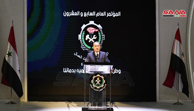 من جهته نوه الأمين العام للاتحاد الدولي لنقابات العمال العرب غسان غصن بصمود سورية في وجه الحرب الإرهابية ووقوفها سداً منيعاً في مواجهة المؤامرات التي تستهدف المنطقة وفي مقدمتها ما تسمى “صفقة القرن” مؤكداً أن سورية ستنتصر في الحرب التي تستهدف النيل من سيادتها واستقلالية قرارها.