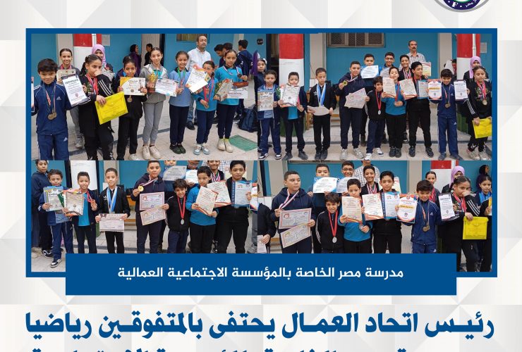 على صفحته الرسمية على موقع التواصل الاجتماعى .. رئيس اتحاد العمال يحتفى بالمتفوقين رياضيا بمدرسة مصر الخاصة التابعة للمؤسسة الاجتماعية العمالية احدى المؤسسات التابعة للاتحاد العام لنقابات عمال مصر. ...