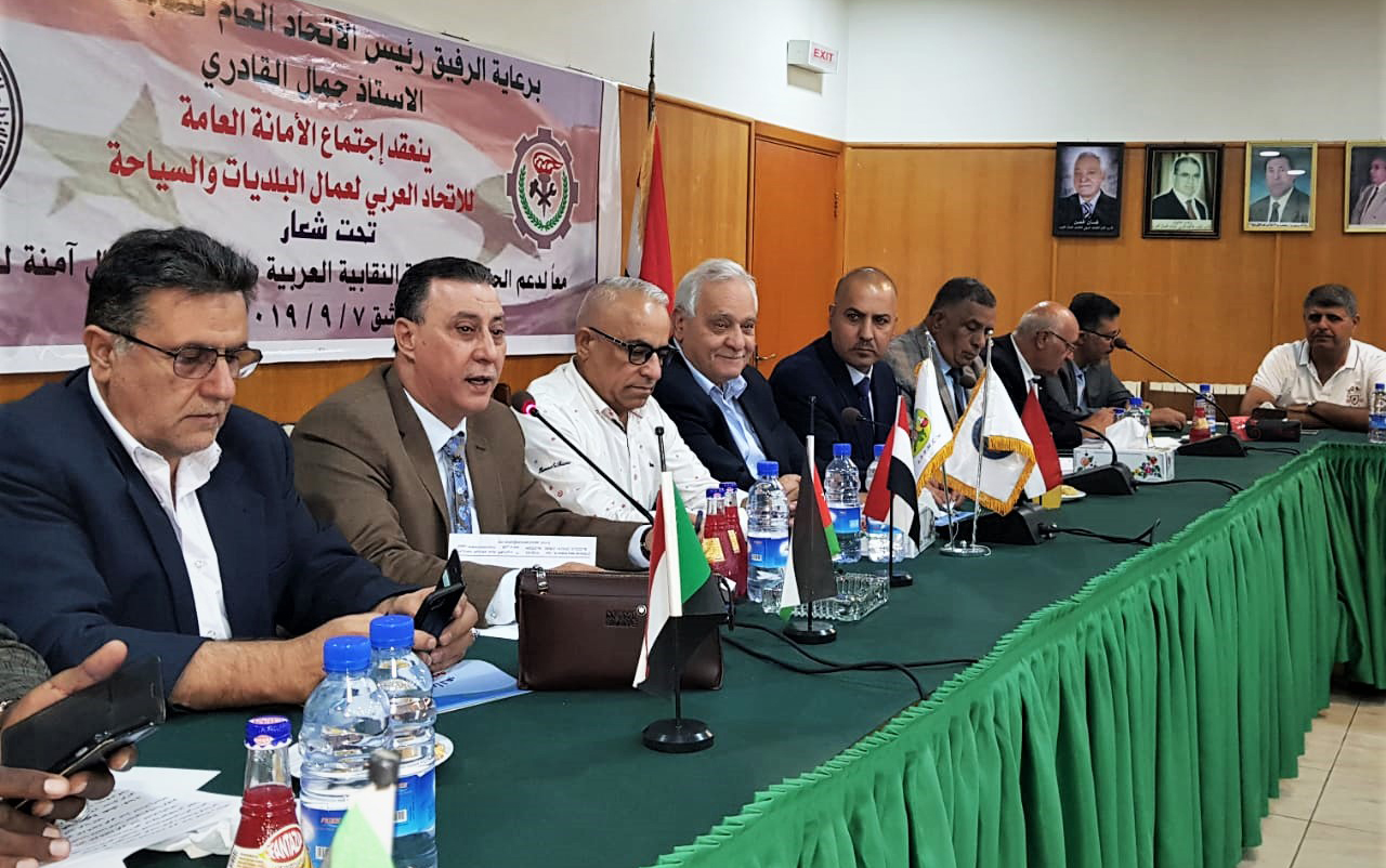 [mks_highlight color=”#f4f482″]متابعة | المركز الاعلامى[/mks_highlight] تحت رعاية الاتحاد العام لنقابات عمال سوريا برئاسة جمال قادرى انعقدت الامانة العامة للاتحاد العربى لنقابات عمال البلديات والسياحة برئاسة هشام فاروق المهيرى رئيس المجلس التنفيذي للاتحاد العربى للبلديات والسياحة، ورئيس النقابة العامة للعاملين بالخدمات ...