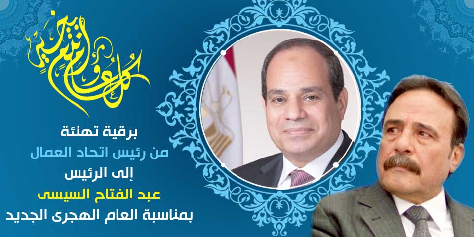بعث النائب جبالى المراغى رئيس الاتحاد العام لنقابات عمال مصر، ورئيس لجنة القوى العاملة بمجلس النواب ببرقية تهنئة الى الرئيس عبد الفتاح السيسى رئيس الجمهورية بمناسبة العام الهجرى الجديد.