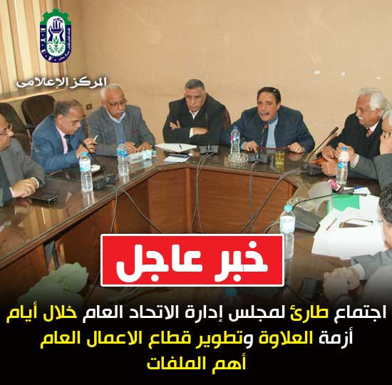 تنظم النقابة العامة للعاملين بالمرافق العامة المؤتمر العمالى الشعبى تحت عنوان “بنحب مصر” الذى يرأسه الاستاذ عبد الفتاح ابراهيم رئيس الاتحاد العام لنقابات عمال مصر، وذلك فى إطار المؤتمرات التى ينظمها الاتحاد العام لدعم خارطة الطريق والدعوة للاستفتاء “بنعم” للدستور.