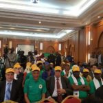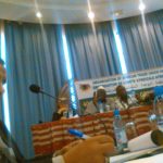 علي هامش المؤتمر العام الحادي عشر لمنظمة الوحدة النقابية الإفريقية التقي النائب محمد وهب الله الأمين العام لاتحاد عمال مصر كسارون فولو الامين العام لاتحاد عمال اثيوبيا.