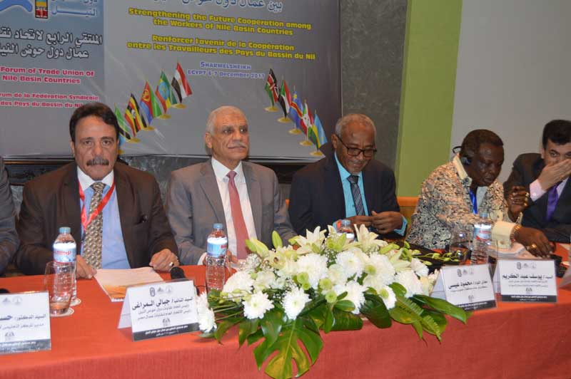 أكد المشاركون فى الملتقى الرابع لاتحاد نقابات عمال دول حوض النيل والذى نظمه الاتحاد العام لنقابات عمال مصر برئاسة النائب جبالى المراغى رئيس لجنة القوى العاملة بمجلس النواب تحت عنوان (دعم مستقبل التعاون بين عمال دول حوض النيل) خلال يومى 6، 7 ديسمبر 2017 على أرض السلام “مدينة شرم الشيخ”.