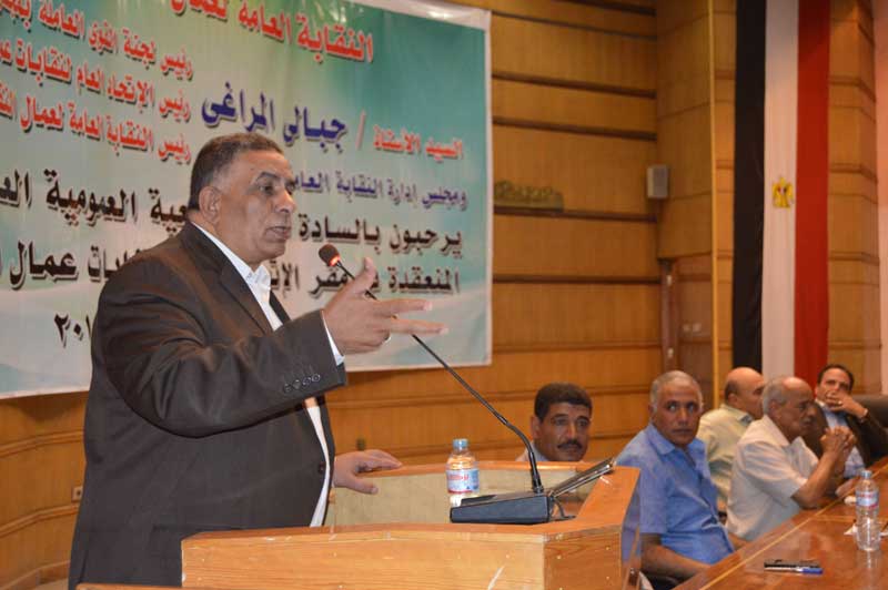 عبر الامين العام لاتحاد العمال عن سعادته للدعوة الكريمة من النائب جبالى المراغى رئيس الاتحاد لحضور الجمعية العمومية، حيث اعلن للحضور بان الجمعية العمومية لعمال النقل البرى تعتبر من أكبر وأقوى الجمعيات العمومية فى الاتحاد العام لنقابات عمال مصر، واصفا عمال النقل البرى بجنود التنمية.