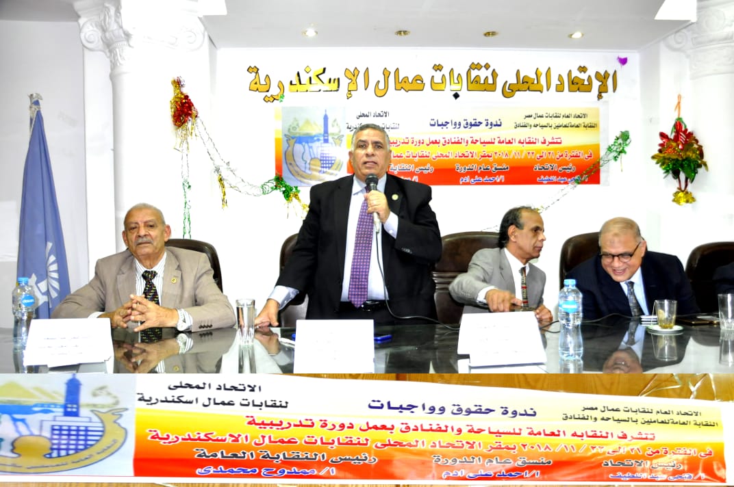 وقال المهندس خالد الفقى نائب رئيس الاتحاد أن المرحلة الراهنة تحتاج الى اعداد النقابيين الاكفاء لكى يشاركوا فى فاعلية تطبيق القوانين والاستعداد لانتخابات المجالس المحلية التى لاتقل عضوية العمال والفلاحين فيها عن 50% مشيدا بالدور الذى لعبه رواد العمل النقابى الذين ساهموا خلال مسيرتهم فى البناء والدفاع عن الوطن.