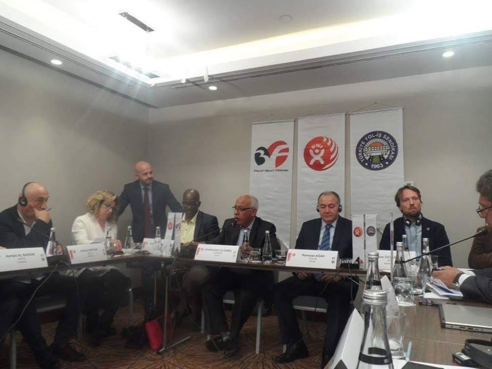 ترأس عبد المنعم الجمل، رئيس النقابة العامة للعاملين بالبناء والأخشاب، اجتماع الشبكة العربية للبناء والأسمنت بالاتحاد الدولي لعمال البناء والأخشاب BWI، والذى عقد في اسطنبول بتركيا.