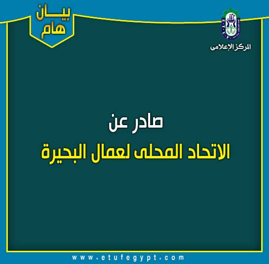 وأخيرا.. يؤكد مجلس ادارة الاتحاد المحلى لعمال البحيرة على دعمه لكافة مؤسسات الدولة وبالأخص وزارتى (الدفاع – الداخلية) لتحقيق أمن واستقرار البلاد.