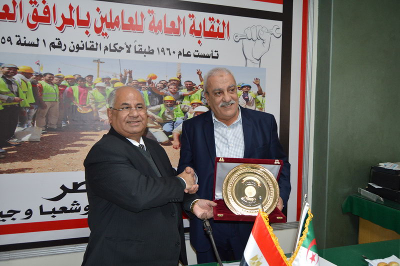 وفى نهاية اللقاء وقع رؤساء المنظمتين بروتوكولا للتعاون بينهما يهدف إلى تعزيز العلاقات بين المنظمتين فى مجال العمل النقابىن، وقام رئيس النقابة العامة باهداء درع النقابة الى رئيس الوفد الجزائرى.