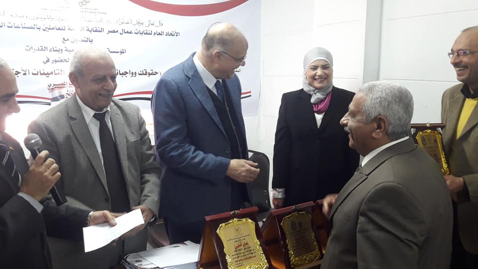 فى إطار اهتمام النقابة العامة للعاملين بالصناعات الهندسية والمعدنية والكهربائية برئاسة المهندس خالد الفقى برفع كفاءة ومهارة العاملين ومن اجل التوعية بالقوانين الصادرة والتى تمس العمل والعمال.