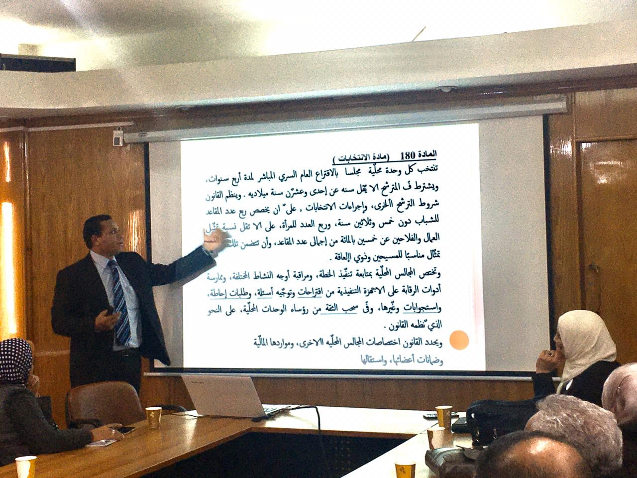 من جانبه اعلن المهندس خالد الفقى اننا في حاجة الى المجالس المحلية لملئ الفراغ المتروك منذ 10 سنوات وعلينا تأهيل وتقديم العناصر الشابة لهذا الدور لما يتمتعون به من قدرة على التواصل بين المواطنين والاجهزة الحكومية مشددا ان شباب العمال يمتلكون الروح الوطنية العالية وقادرون على تشخيص المرض وتقديم روشتة العلاج.
