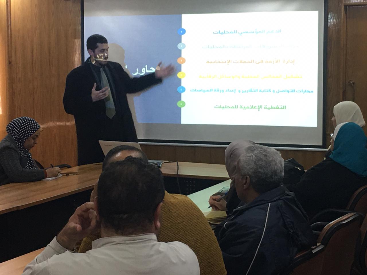 وأضاف أن خطة السكرتارية البدء في تنظيم الندوات والدورات التدريبية والتعريف بأهمية المحليات وصلاحيات أعضائها وكيفية ممارسة العمل المحلى ودورها في التنمية المستدامة والمجالس المحلية ودورها الفعال في الرقابة الشعبية وتعزيز الشفافية وكيفية كتابة التقارير وإدارة الأزمات في الحملات الإنتخابية.