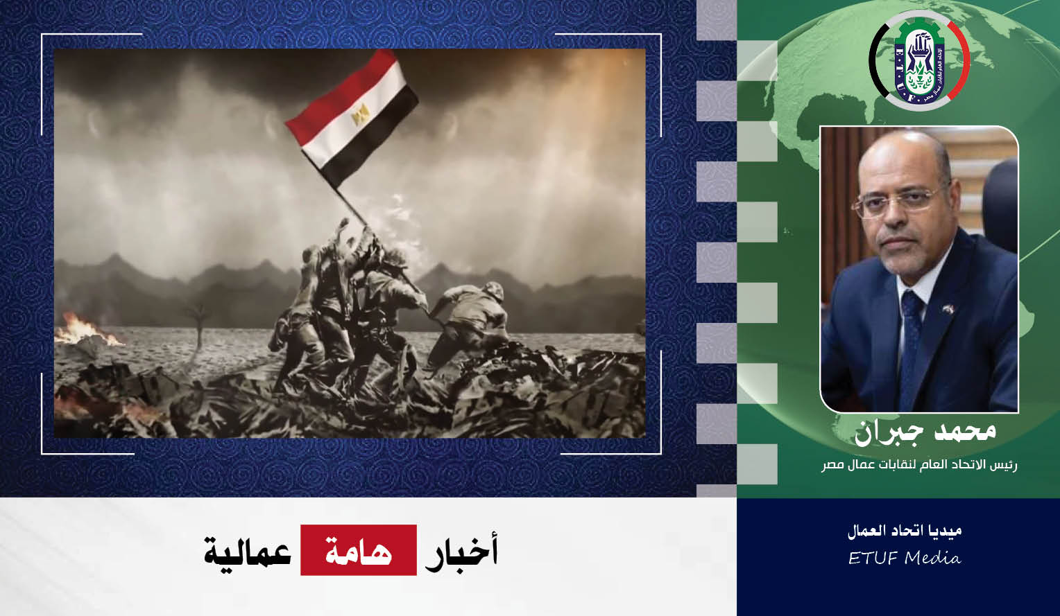 واختتم رئيس اتحاد عمال مصر، تحية واجبة لشهداء مصر في ذكرى العاشر من رمضان وتحية للقيادة السياسية التي تحافظ على الوطن واستقلاله وقوته، وتخوض بصبر وعزيمة من أجل رفع رايته، وتحية لأبطال مصر البواسل الذي سطروا لحظة من أوع لحظات النصر في العالم ورفع راية الوطن لأبد الآبدين.