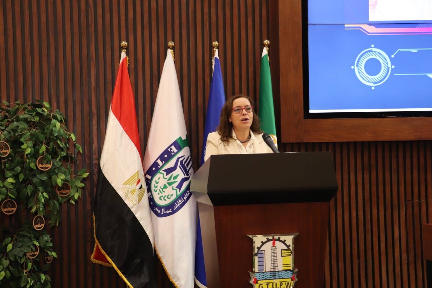 القت السيدة منجيه هادفي المشرفة علي إدارة التنمية البشرية والتشغيل بمنظمة العمل، كلمة نيابتا عن سعادة السيد فايز علي المطيري المدير العام لمنظمة العمل العربية، هنأت خلالها المهندس عبدالمنعم الجمل علي توليه منصب رئيس الإتحاد العام لنقابات عمال مصر.