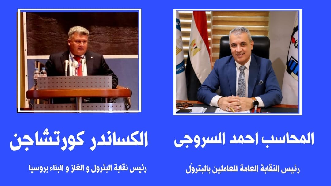 استقبل المحاسب احمد السروجى، رئيس النقابة العامة للعاملين بالبترول، رسالة تهنئة من الكساندر كورتشاجن، رئيس نقابة العاملين بالبترول والغاز والبناء بروسيا، لتولية منصب رئيس نقابة البترول في مصر خلفا للسيد محمد جبران رئيس النقابة السابق، رئيس اتحاد العمال، بعد توليه حقيبة وزارة العمل وحلف اليمين ضمن الحكومة الجديدة.