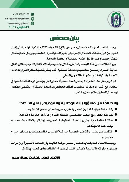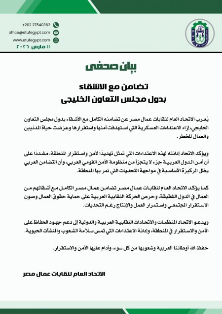 Under the Patronage of his Excellency, the President Abdel Fattah El-Sisi, Egypt Trade Union Federation completed the preparations to host the 43rd session of OATUU