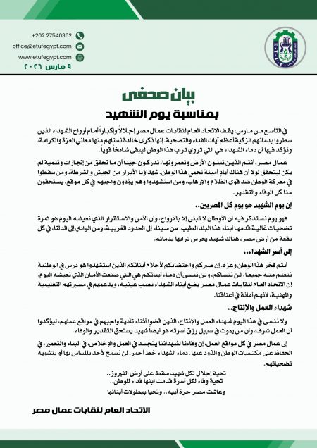 بيان الاتحاد العام بمناسبة ذكرى يوم الشهيد