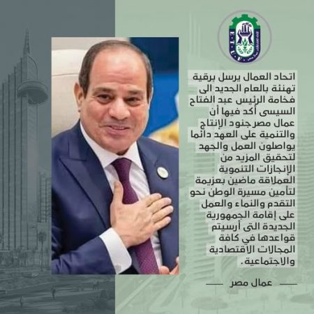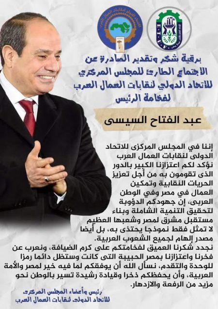 اتحاد العمال يشيد بموقف ورسائل فخامة الرئيس عبد الفتاح السيسي في القمة العربية