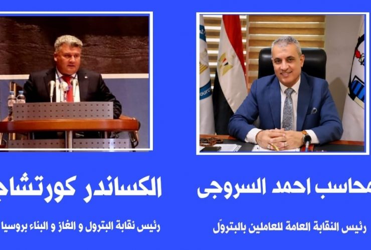 كتب-عصام النجار استقبل المحاسب احمد السروجى، رئيس النقابة العامة للعاملين بالبترول، رسالة تهنئة من الكساندر كورتشاجن، رئيس نقابة العاملين بالبترول والغاز والبناء بروسيا، لتولية منصب رئيس نقابة البترول في مصر خلفا للسيد محمد جبران رئيس النقابة السابق، رئيس اتحاد العمال، ...